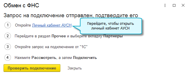 Далее следуйте инструкции, перейдите в личный кабинет АУСН и подтвердите запрос