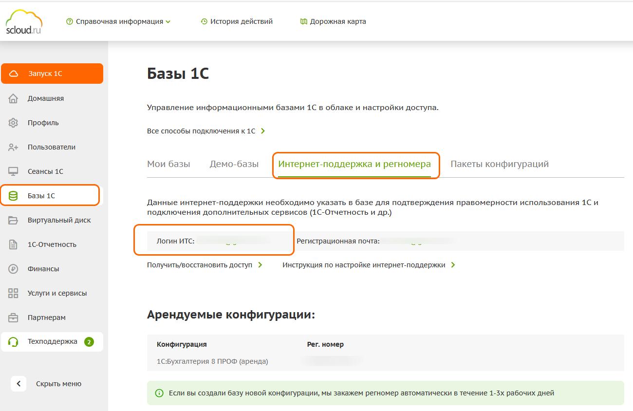 Для того, чтобы войти на портал ИТС воспользуйтесь вашими данными Интернет-поддержки. Пользователи облака Сервис Клауд могут проверить свою Интернет-поддержку в Личном кабинете на нашем сайте в разделе Базы 1С – Интернет-поддержка и регномера