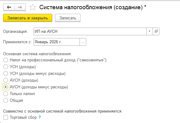 В релизе 1С Бухгалтерии предприятия 3.0.114.23 добавлена новая система налогообложения – автоматизированная УСН (далее – АУСН). Эту систему в рамках эксперимента (эксперимент действует до 2027 года включительно) смогут применять ИП и организации при соблюдении нескольких условий:
