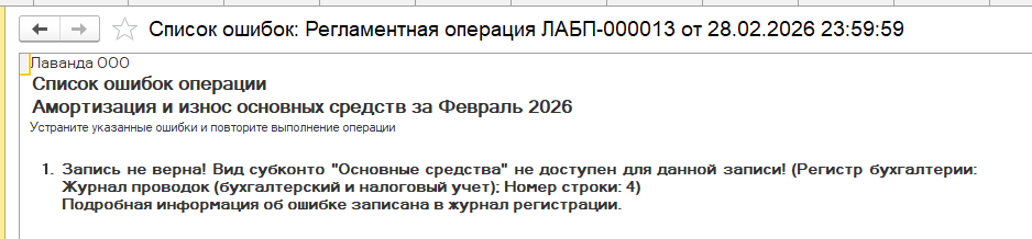 Если вы столкнулись с ошибкой при начислении амортизации "Запись не верна! Вид субконто "Основные средства" не доступен для данной записи!"