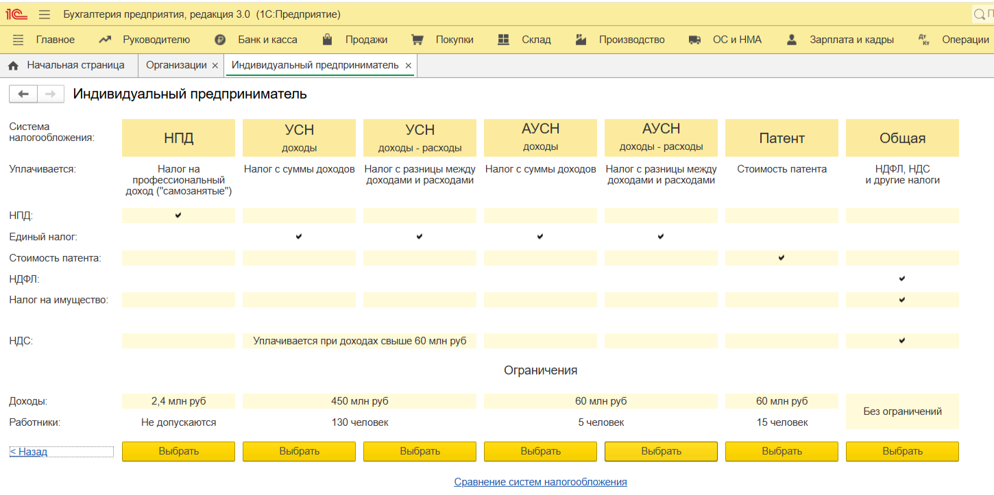 Перед тем как начать отражать хозяйственные операции, необходимо «познакомить» 1С:Бухгалтерия с вами и вашим бизнесом. Этот этап одинаков для всех ИП, независимо от выбранной системы налогообложения.