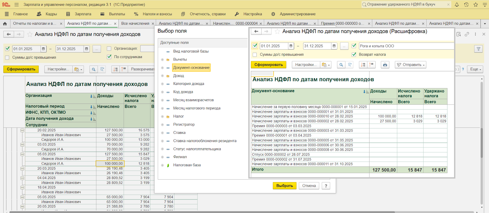 1С — это не только калькулятор, но и мощная база данных. В ней есть специальные отчеты, которые позволяют «заглянуть» внутрь регистров и увидеть, как НДФЛ был начислен, удержан и когда он должен попасть в уведомление. Для контроля и устранения расхождений нам понадобятся несколько инструментов.