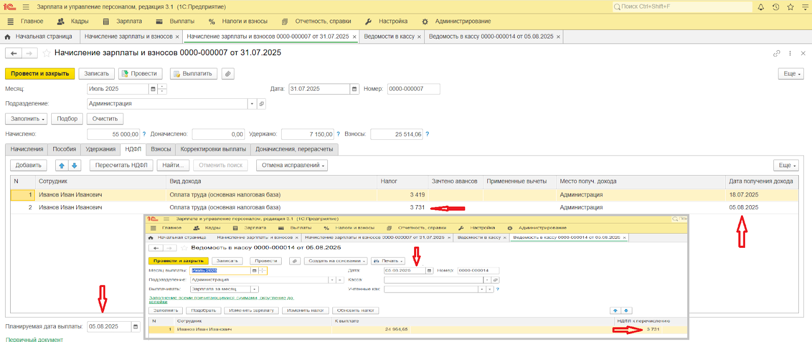 Программа должна четко разделять, к какому периоду относится каждое удержание, чтобы правильно сформировать уведомление. Если 1С некорректно зафиксировала дату выплаты, налог «упадет» не в тот отчетный период, что приведет к расхождению с ФНС.