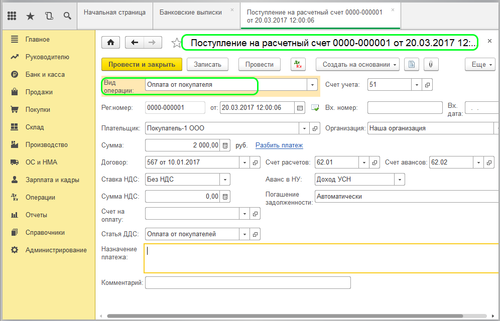 Что пишем: поступления от клиентов на расчетный счет, выручку по кассе, внереализационные доходы (например, проценты по депозитам).