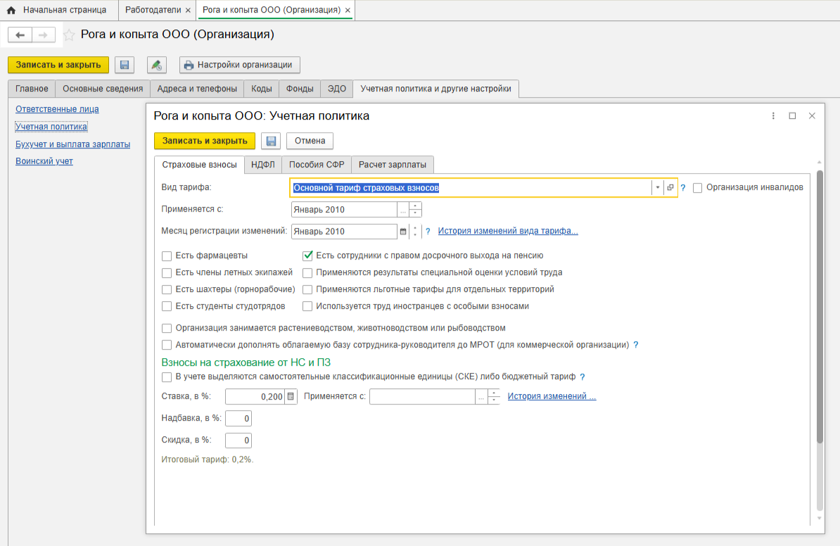 Первое, с чего стоит начать, — проверка настроек налогов и взносов. Налоговая база и льготы могут меняться.