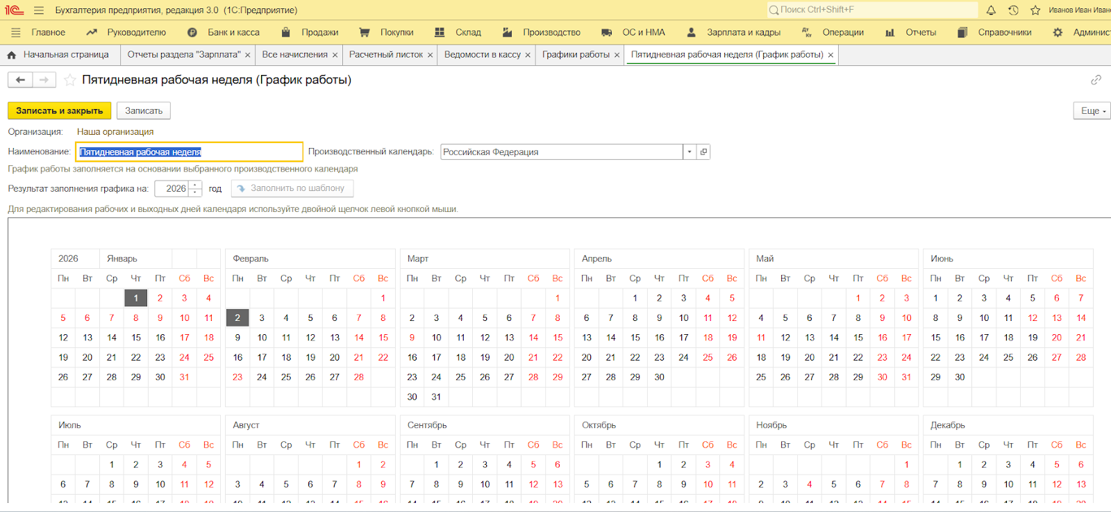 Если на вашем предприятии не используются сложные графики сменности или специфические надбавки, то функционала 1С:Бухгалтерия хватит с головой, потому что в этой программе можно установить только один (единый для всей компании) График работы (Зарплата и кадры — Справочники и настройки).