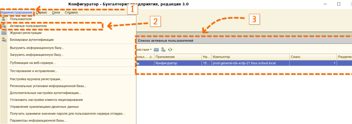 Пользователь, который будет выполнять обновление информационной базы 1С, должен иметь доступ к удаленному рабочему столу для подключения к конфигуратору и права администратора в самой информационной базе 1С.