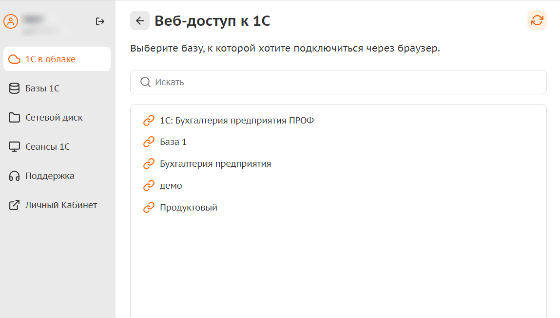 В открывшемся окне «Веб-доступ 1С» выберите необходимую базу, щелкнув по ее названию. База откроется в браузере, установленном на вашем Mac по умолчанию.