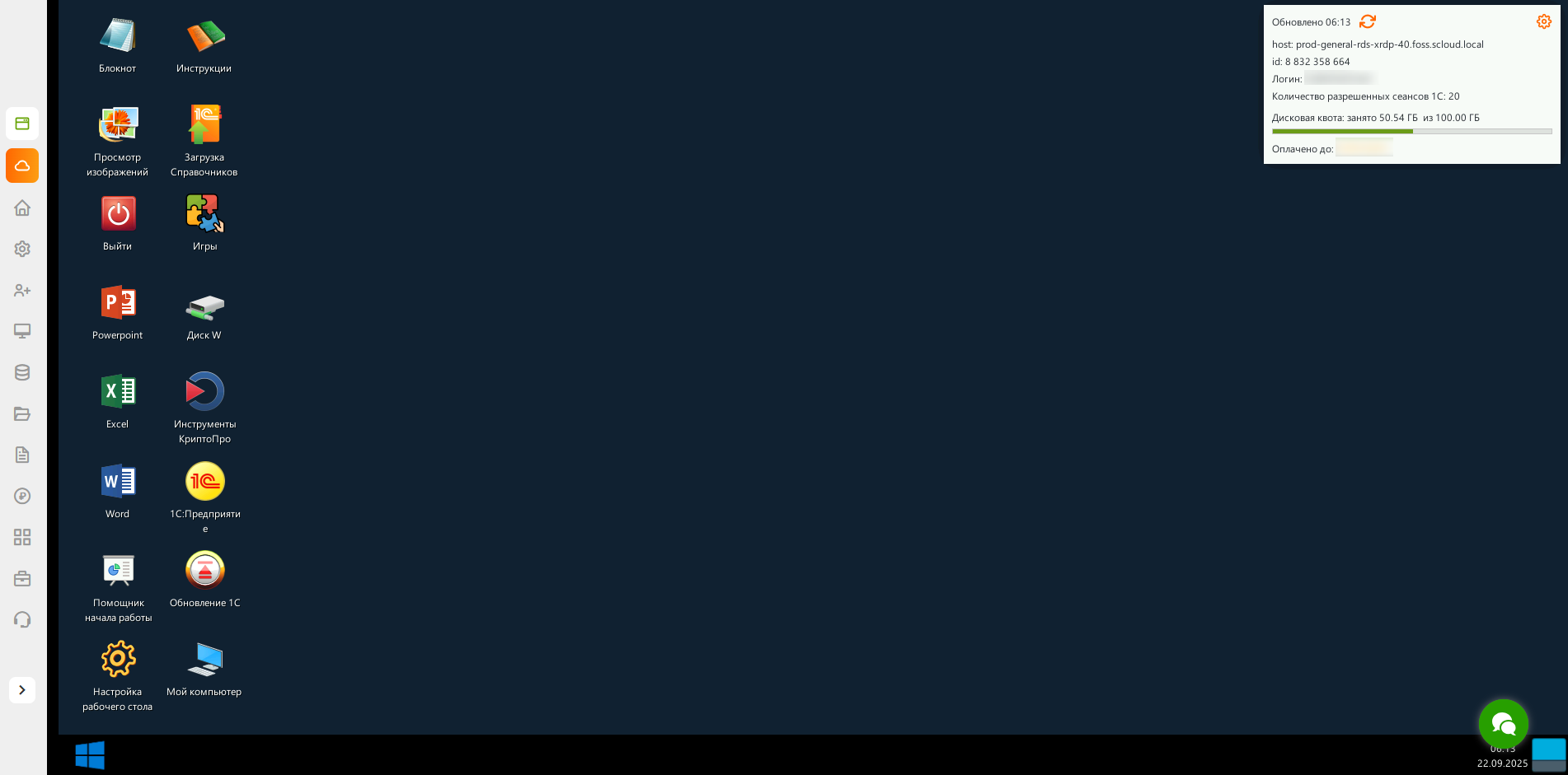 Запуск 1С через удаленный рабочий стол в личном кабинете